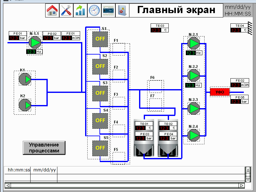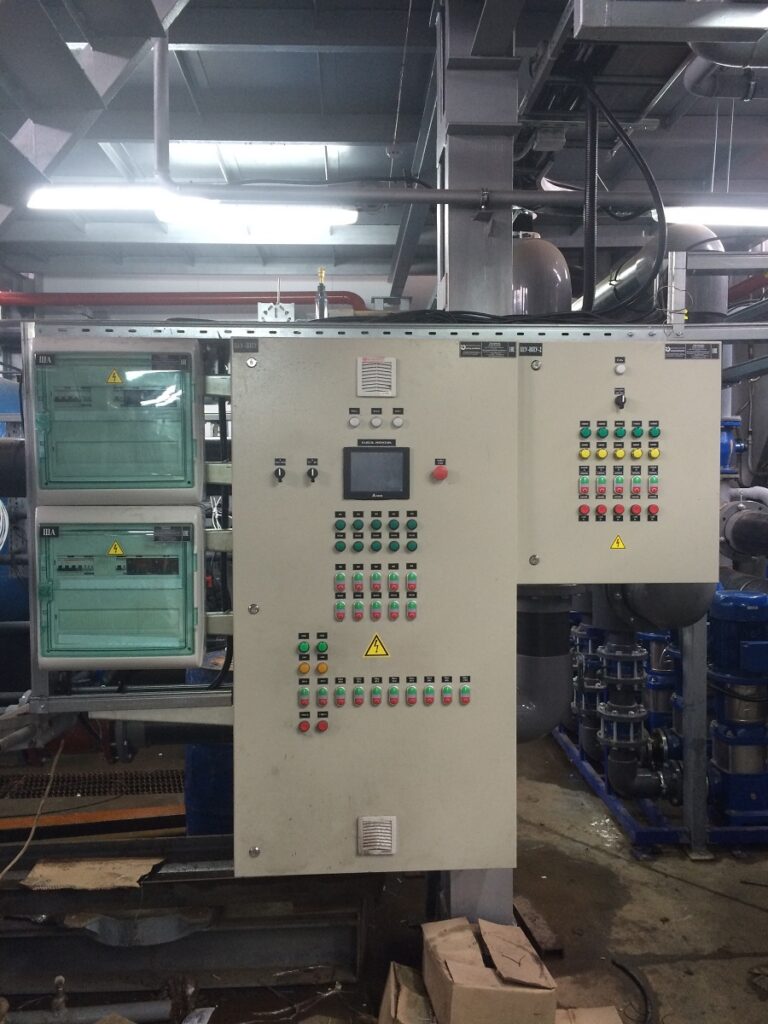 Автоматизированная система управления разработана с использованием программируемого логического контроллера ОВЕН ПЛК160. Локальный контроль системы является полнофункциональным, а управление и корректировка параметров обеспечивается с панели оператора, установленной на шкафу.