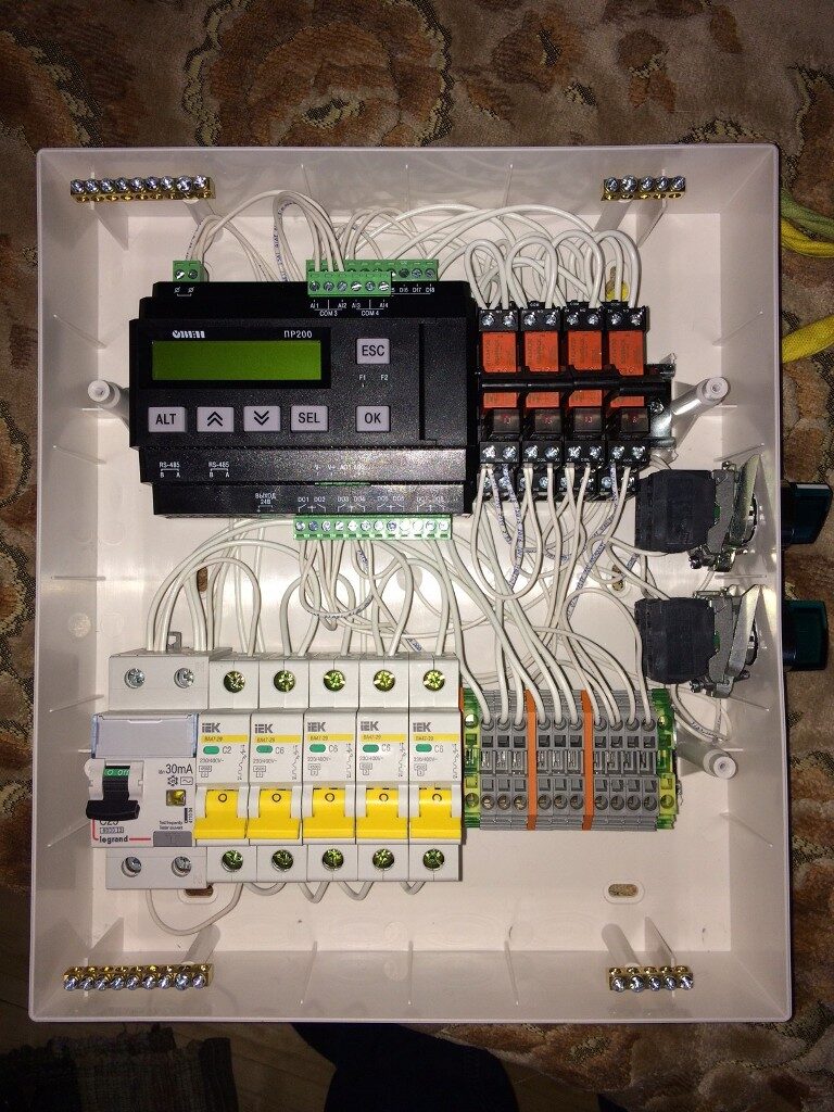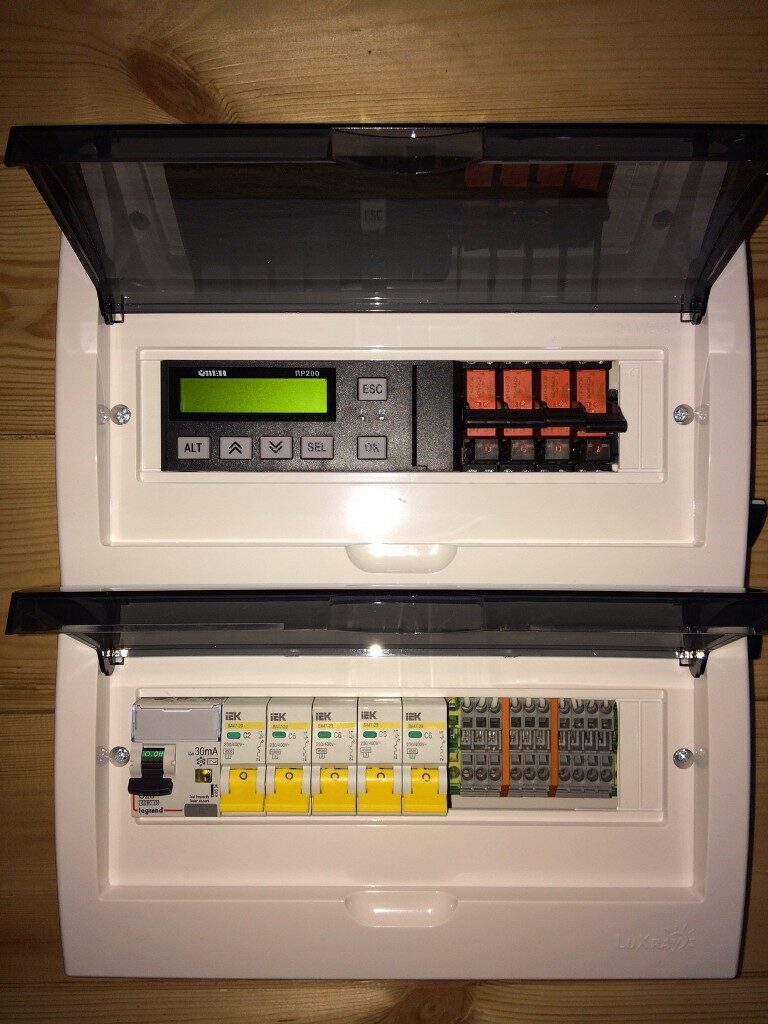 В сентябре 2016 для загородного дома была разработана и запущена интеллектуальная система управления четырьмя конвекторами. Была осуществлена разработка схемы и подбор комплектующих, сборка шкафа, программирование контроллера. В основе системы управления – программируемое реле ОВЕН ПР200.
