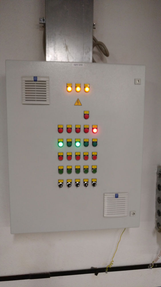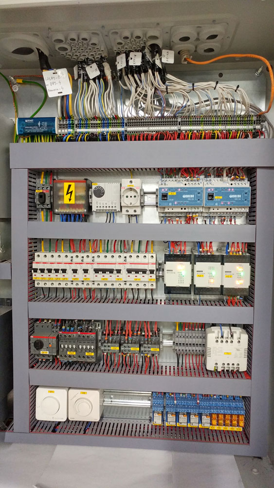 Для управления инженерными системами здания разработаны щиты управления, находящиеся поблизости от управляемых агрегатов. Помимо автоматики, в щитах размещается пускорегулирующая, коммутирующая и светосигнальная аппаратура, элементы релейной автоматики, вторичные источники питания и контроллеры.