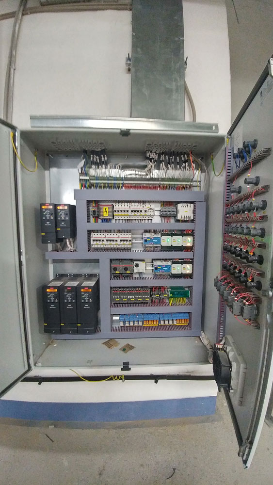 Для просмотра и изменения параметров регулирования возможно подсоединение панели управления, предоставляющей удобный доступ к параметрам контроллера в виде системы русскоязычных меню. Проектом предусмотрено электропитание, защита и управление оборудованием как в автоматическом, так и в ручном режиме управления.