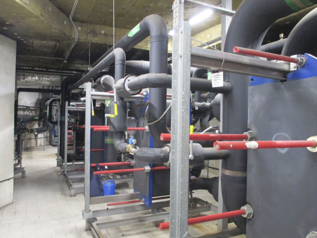Тепловой пункт – важнейшая из инженерных систем поскольку снабжает торгово-досуговый центр теплом в осенне-зимний период и горячей водой круглогодично. Тепло от ИТП получают не только радиаторы отопления, но и вся приточная вентиляция и тепловые завесы.
