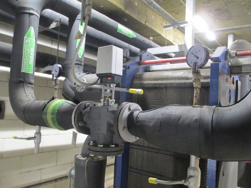 В ходе работ была заменена автоматика теплового пункта: управляющий контроллер, датчики температуры и давления. Силовые щиты управления насосами, укомплектованные электрооборудованием фирмы АББ и автоматические запорно-регулирующие гидроклапаны (КЗР) фирмы Данфосс оставили без изменений, поскольку они в хорошем состоянии.