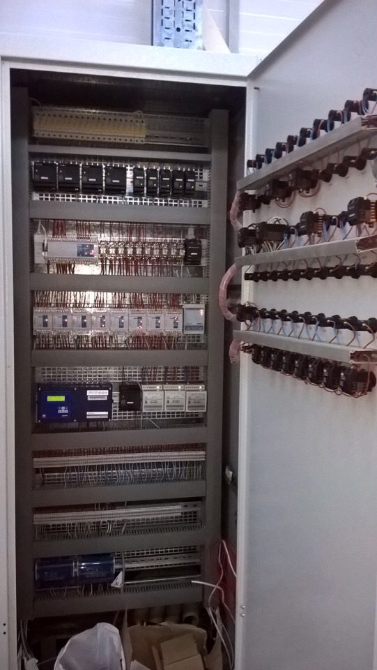 Разработка и изготовление комплекта щитового оборудования (ВРУ, Щит распределения, Щит автоматизации насосов, Щиты котлов, Щит общекотельной автоматики). Написание программного обеспечения. Выполнение пусконаладочных работ.