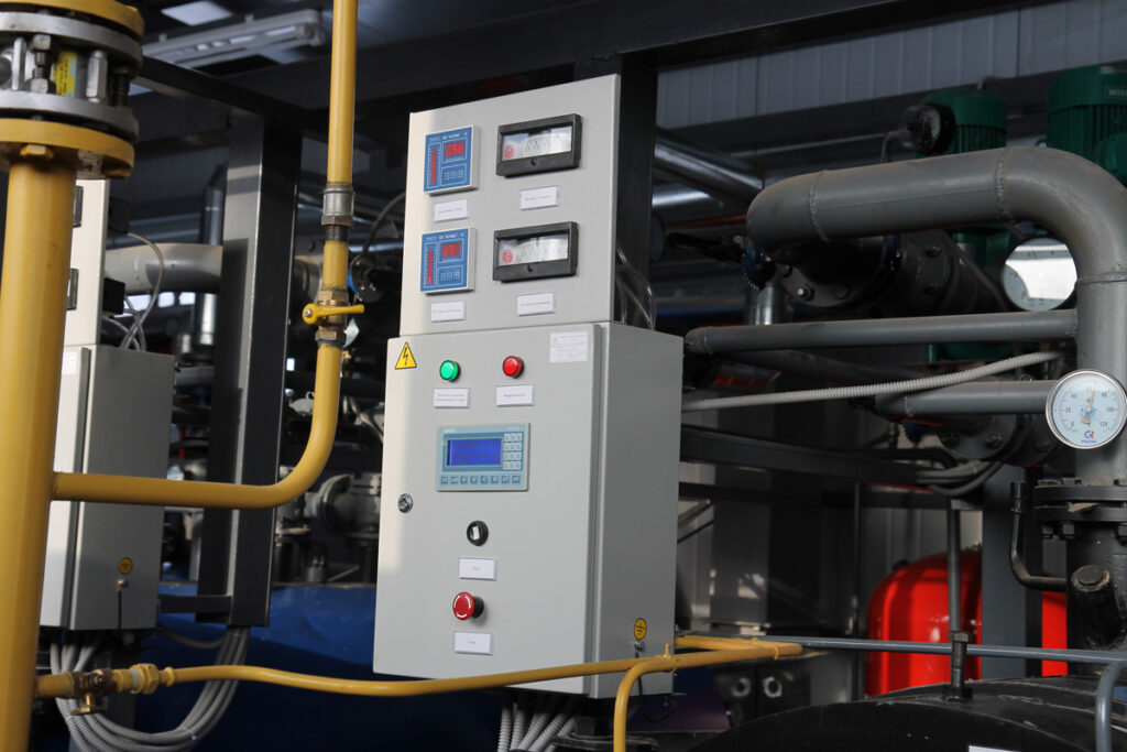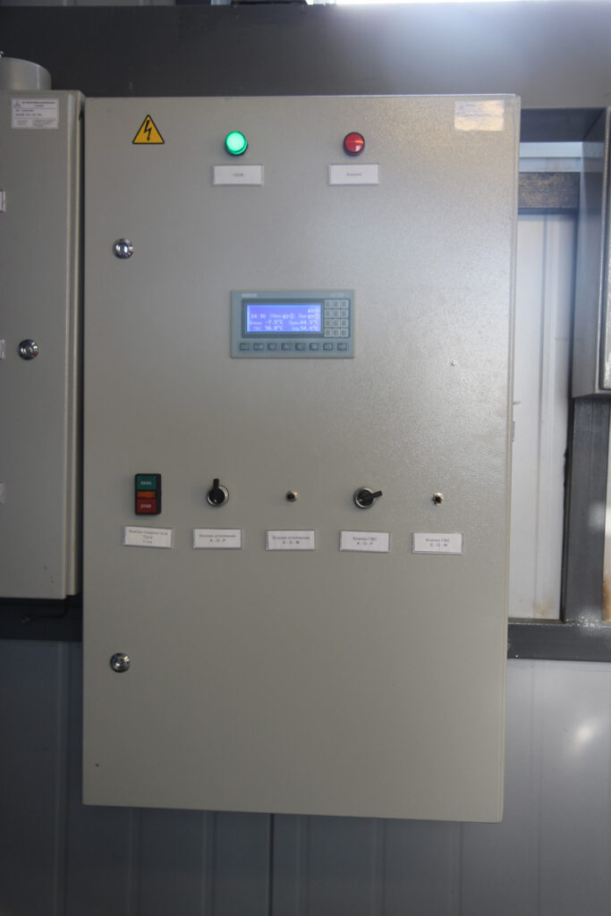 Для управления котлами были установлены четыре щита автоматизации водогрейных котлов ЩАК1.1, работа которых реализована на базе программируемых логических контроллеров ПЛК100-200.Р-М. Остальное оборудование управляется с отдельного щита управления общекотельным оборудованием, реализованным на базе программируемого логического контроллера ПЛК110-220.60.Р-М.