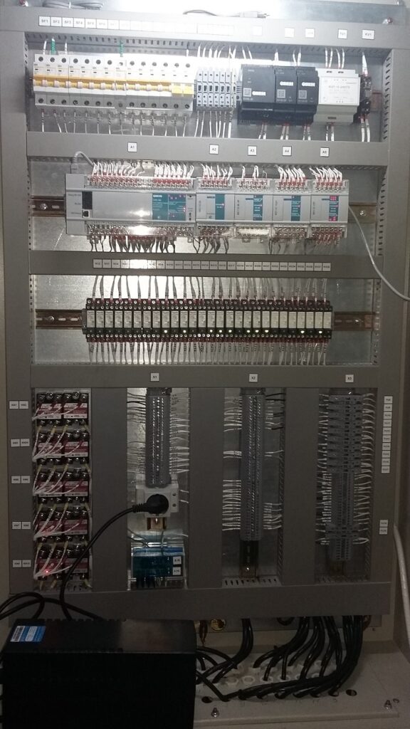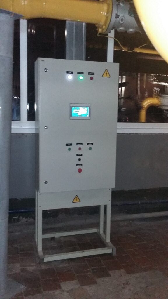 Система автоматизации выполнена на базе современного программно-технического комплекса (ПТК), разработанного и серийно выпускаемого компанией ОВЕН. Функции сбора и обработки информации, формирования алгоритмов управления, выработки управляющих команд выполняет программируемый контроллер ОВЕН ПЛК160 (далее ПЛК или контроллер) в комплекте с модулями ввода-вывода серии ОВЕН МВ110, МУ110. Данные о параметрах технологического процесса и состоянии оборудования отображаются на экране панели оператора Weintek 7”, установленной на дверце щита.