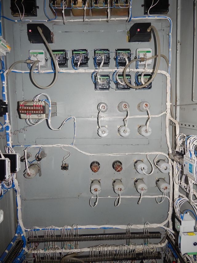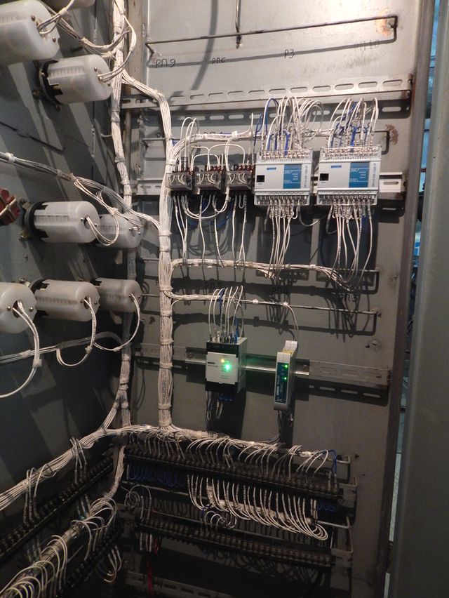 В рамках поставки электрощитового оборудования были поставлены силовые шкафы и шкафы управления для двух корпусов (ИТП). Для приема и распределения электроэнергии в тепловых пунктах используются вводно-распределительные устройства, состоящие из пяти панелей каждое (всего 10 панелей). В вводных панелях установлены переключающие рубильники, ограничители перенапряжения, амперметры и вольтметры. Панели АВР в ИТП1 и ИТП2 реализованы на базе блоков автоматического ввода резерва. В распределительных панелях ВРУ установлены аппараты защиты и коммутации (контакторы, устройства плавного пуска, кнопки и лампы) технологического оборудования тепловых пунктов. Все автоматические выключатели снабжены контактами состояния, сигнализирующими об аварийном отключении. Эта информация передается на контроллеры, установленные в шкафах автоматики.