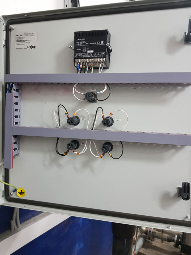 В Новосибирске осуществлено техническое перевооружение опасного производственного объекта – «Сеть газопотребления ЗАО НКБК» с целью увеличения мощности существующей газовой котельной и замены инфракрасных обогревателей на производственную котельную. Проектом реализована автоматизация работы тепломеханического оборудования ИТП, для чего были разработаны шкаф управления ШУ, шкаф управления насосами отопления ШУН1 и шкаф управления насосами ГВС ШУН2.