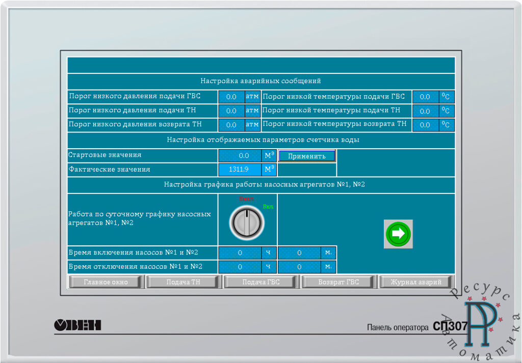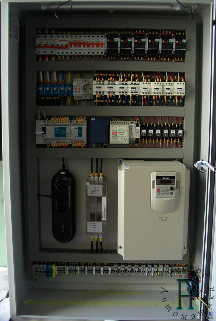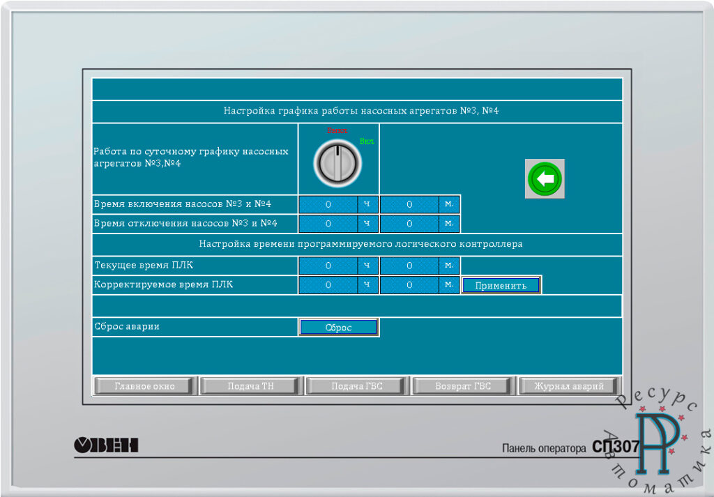 - управление вращением шести насосных агрегатов как с помощью частотно-регулируемого привода, так и прямого включения насосных агрегатов в сеть при помощи контакторов;