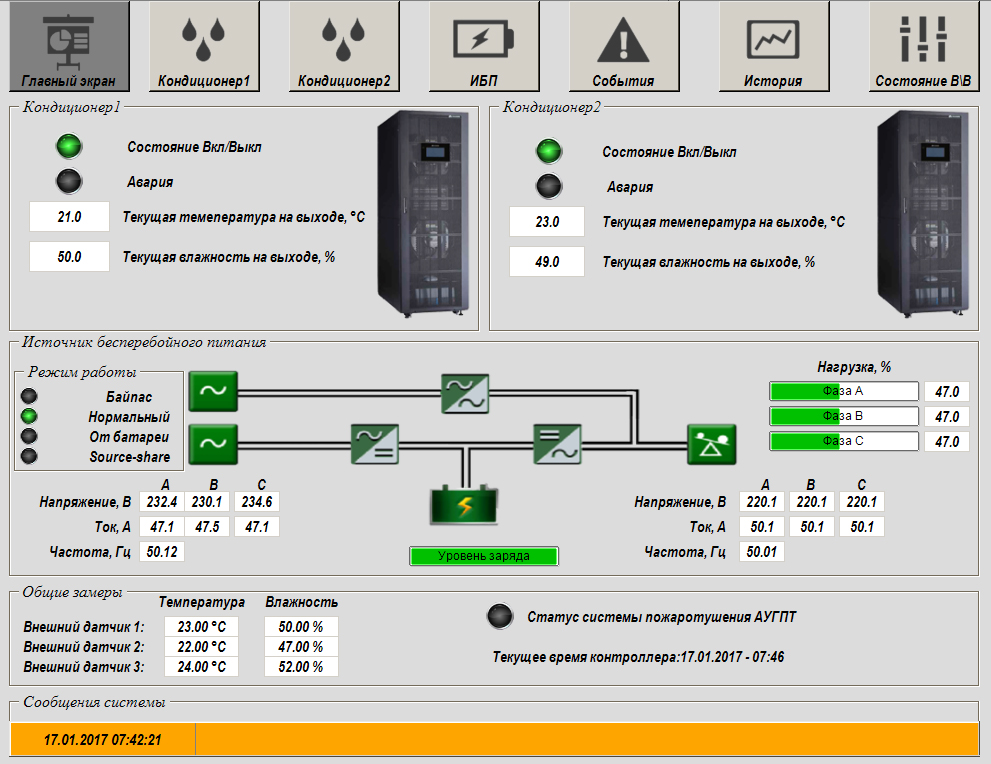 Подсистема предназначена для контроля технологических параметров работы источника бесперебойного (ИБП) питания и шкафных PDU.