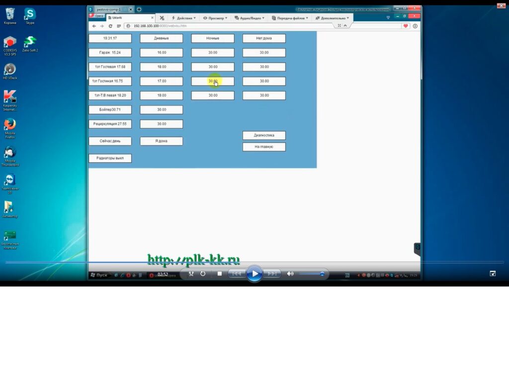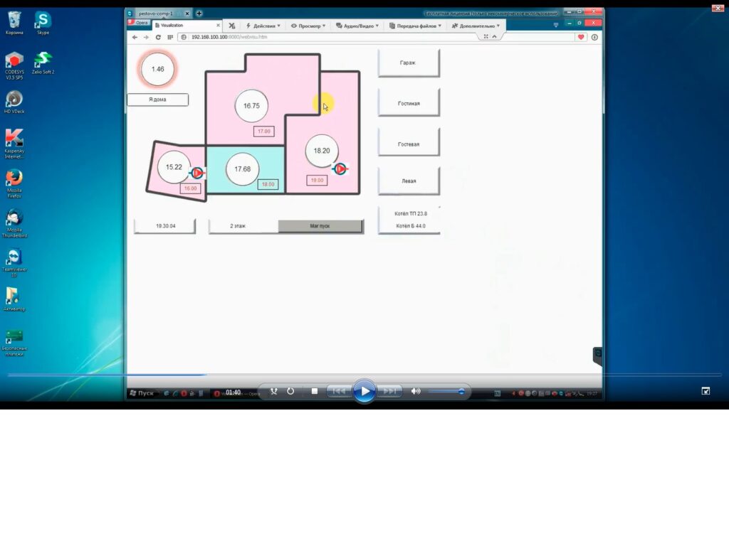Система управления инженерными коммуникациями загородного дома площадью 850м кв. Решена задача построения 7 зонной безрадиаторной системой отопления с точностью поддержания температуры в помещениях 0,1гр максимум включая переходные процессы. Время изменения температуры на новую уставку максимум 1 час. Диагностика оборудования, парирование неисправностей, управление внутри Wi-Fi, из вне GSM любым гаджетом с любым обозревателем. Интерфейс по эскизам заказчика.
