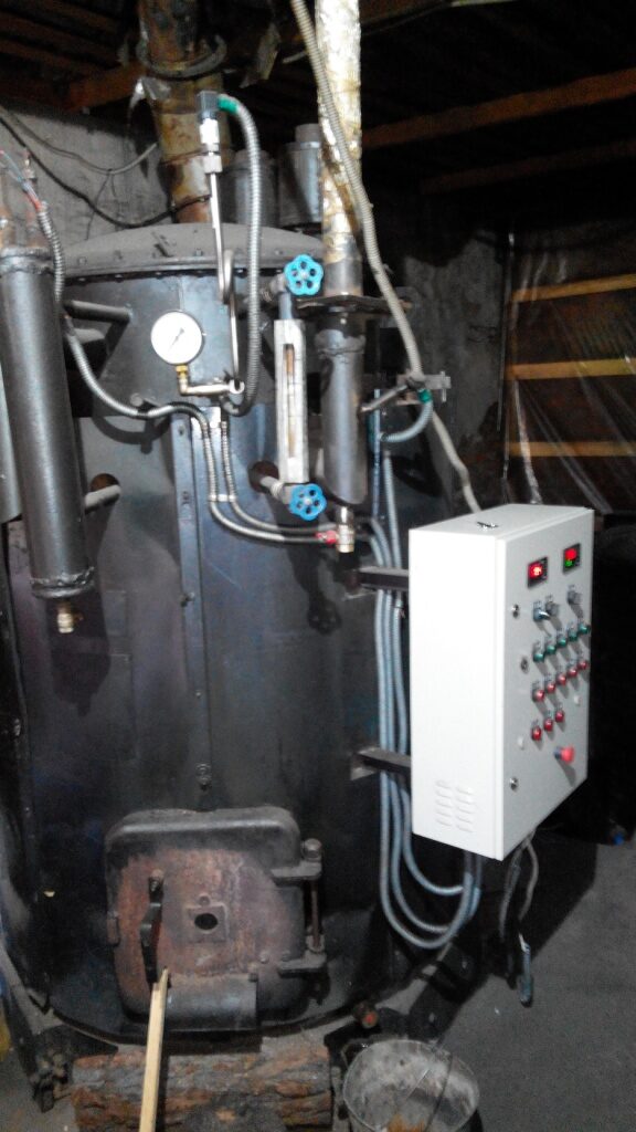 На базе оборудования ОВЕН осуществлена модернизация блока управления дровяного котла-парообразователя КТ-500 1987 года выпуска, используемого в качестве источника тепла для сушильной камеры древесины и отопления производственных помещений. Заводская автоматика уже не обеспечивала безопасной и бесперебойной работы. После анализа заводской схемы управления была разработана новая на современной элементной базе с учетом требований заказчика.