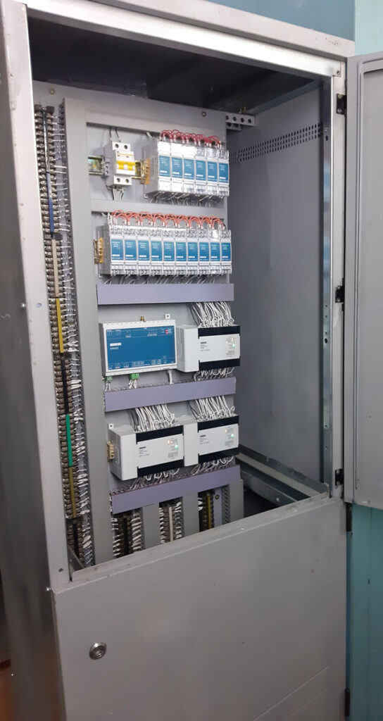 Данные со всех этих модулей поступают на программируемый логический контроллер ПЛК323-ТЛ. Контроллер обрабатывает данные и по МЭК-104 передает данные на сервер телемеханики.
