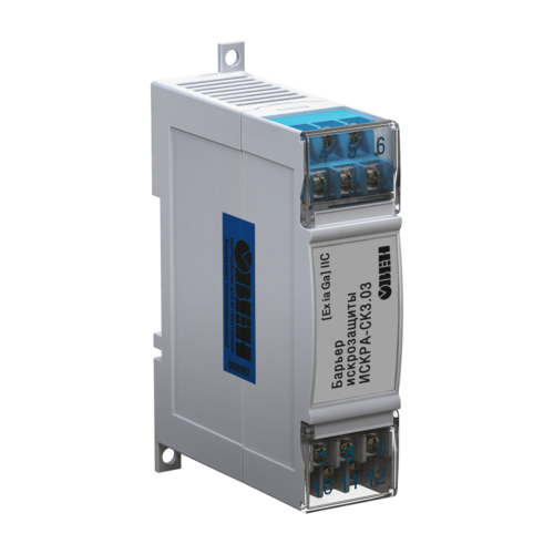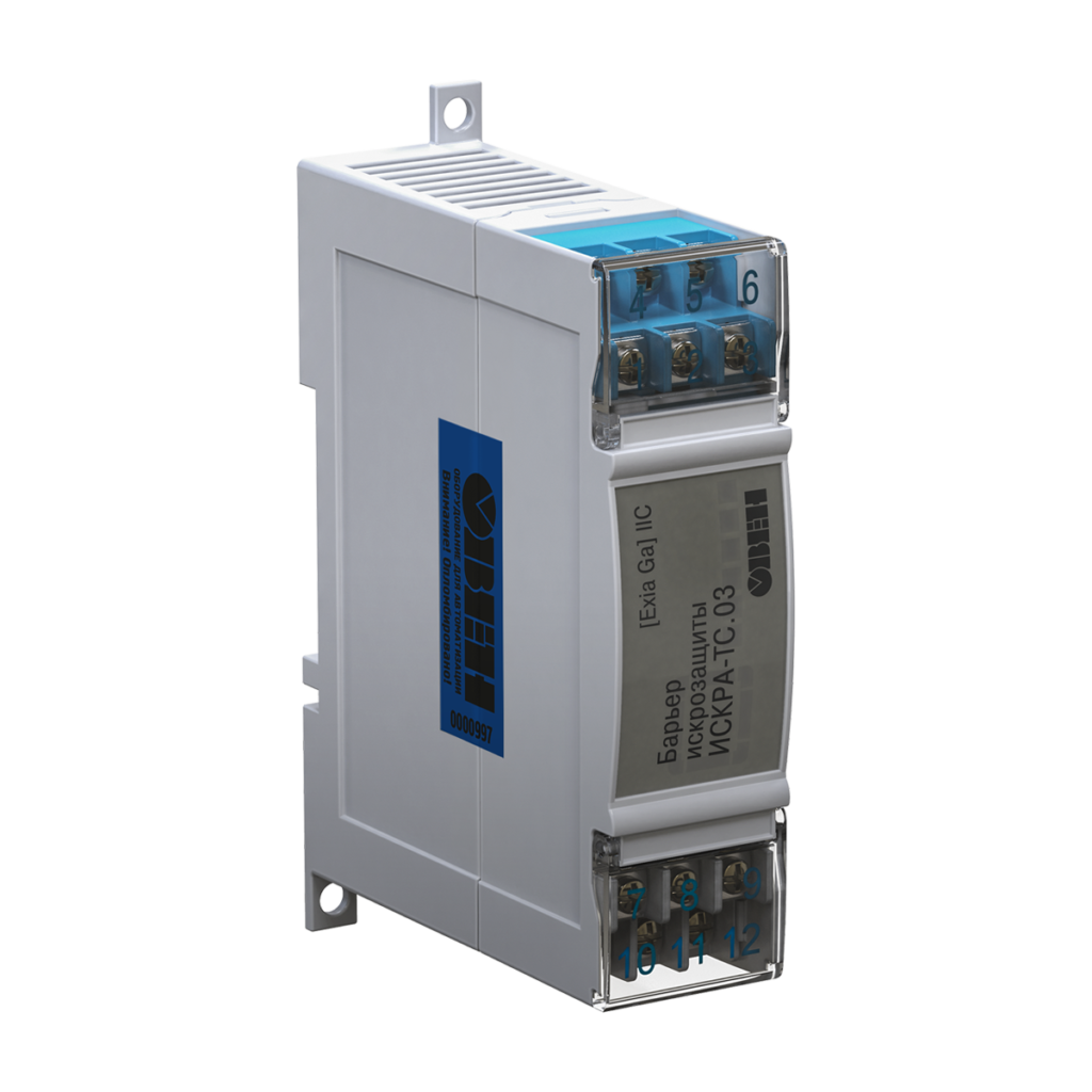 Барьер искрозащиты ОВЕН ИСКРА предназначен для защиты электрической цепи датчика путем ограничения напряжения и тока в ней до искробезопасных значений.