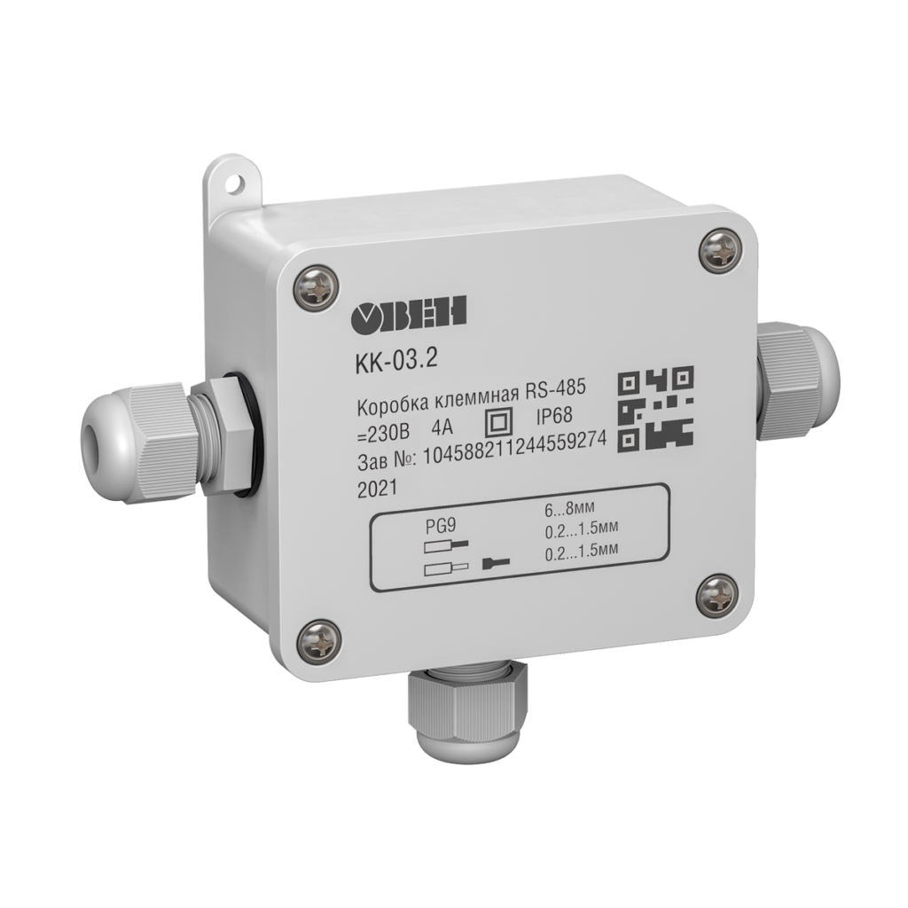 КК-03 предназначена для разветвления кабелей интерфейса RS-485, а также сетей 230 В с номинальными токами не более 4 А на предприятиях различных отраслей промышленности и сельского хозяйства.