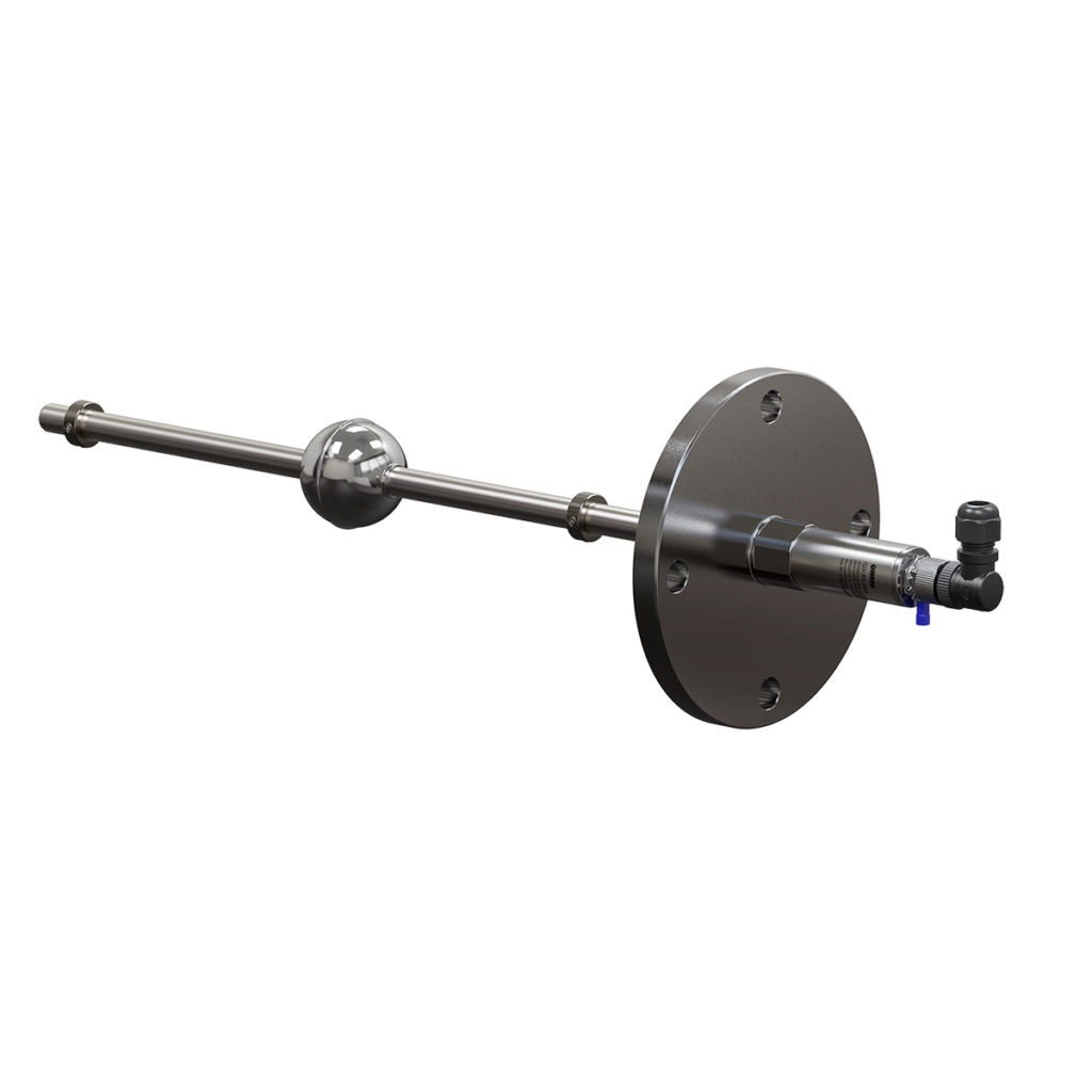 Поплавок с постоянным магнитом перемещается вместе с уровнем жидкости по штоку, в котором находится матрица герконов и сопротивлений. Под воздействием магнитного поля происходит срабатывание герконов, цепь работает по схеме трёхпроводного потенциометра. При изменении уровня жидкости прямо пропорционально изменяется выходное сопротивление датчика, преобразуемое в цифровой код для передачи данных по сети RS-485 (протокол Modbus RTU).