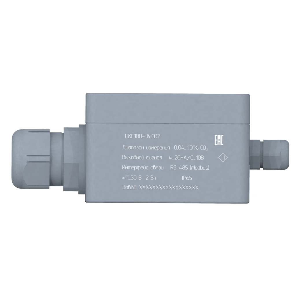 Промышленный датчик концентрации углекислого газа ОВЕН ПКГ100-СО2 предназначен для непрерывного преобразования концентрации газа в два унифицированных выходных сигнала 4…20 мА и передачи измеренных значений по интерфейсу RS-485 (Modbus RTU).
