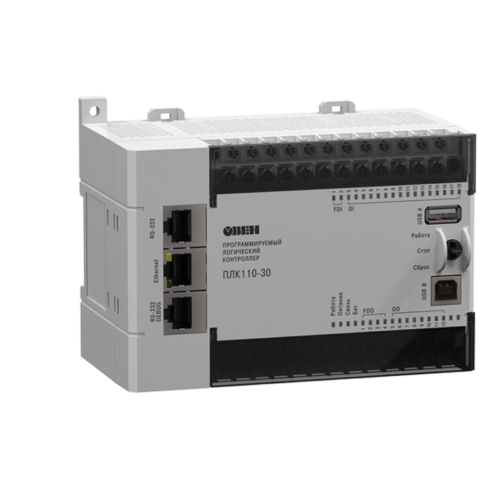 ОВЕН ПЛК110[М02] – линейка программируемых моноблочных контроллеров с дискретными входами/выходами на борту для автоматизации средних систем.