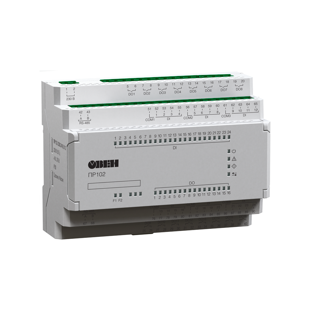ОВЕН ПР102 – программируемое реле для управления вентиляцией, отоплением, насосами и другим оборудованием. Главным преимуществом прибора является широкий функционал и высокая плотность каналов ввода/вывода.