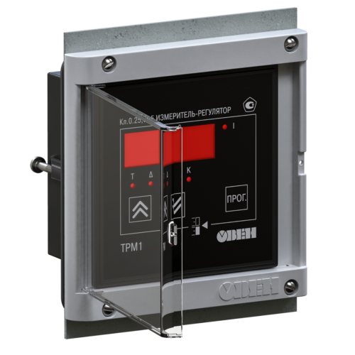Конструкция рамки содержит прозрачную дверцу, которая может открываться на угол до 100 градусов и фиксироваться в открытом положении. Прозрачная дверца осуществляет дополнительную защиту приборов от внешних механических воздействий, защищает лицевую панель от попадания брызг, загрязнений, значительно увеличивает срок службы гибко-пленочной клавиатуры прибора.