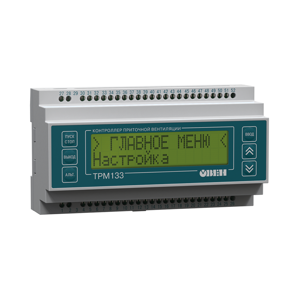 Контроллер ОВЕН ТРМ133 предназначен для регулирования температуры воздуха в помещениях, оборудованных системой приточной вентиляции с водяным калорифером.