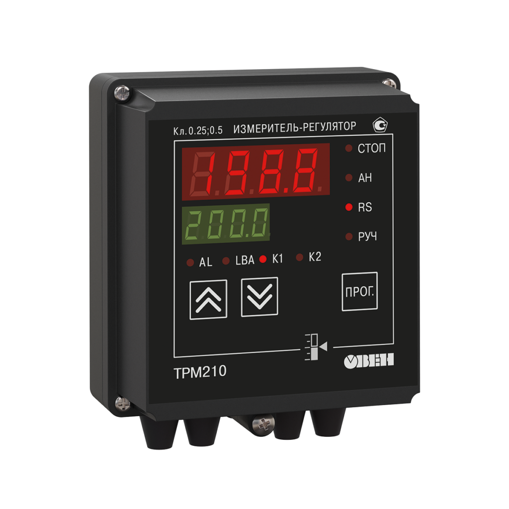 ОВЕН ТРМ210 – ПИД-регулятор температуры, давления или других физических величин, предназначен для точного поддержания заданных параметров в различных технологических процессах. Используется в составе сложного технологического оборудования: экструдеров, термопластавтоматов, печей, упаковочного, полиграфического, вакуум-формовочного оборудования и т.п.