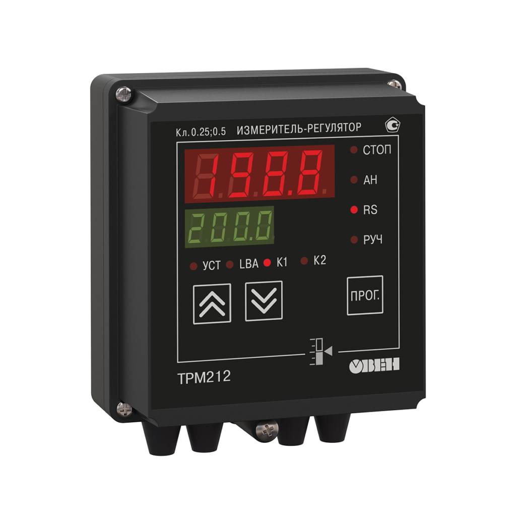 ТРМ212-Н.РР – это прибор в настенном корпусе, с универсальным входом, предназначенный для управления задвижкой с электромеханическим приводом с релейным управлением «больше/меньше», 220 В (1й выход – реле «больше», 2й выход – реле «меньше»).