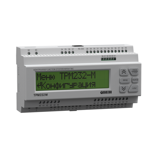 ОВЕН ТРМ232М – контроллер с готовым алгоритмом для регулирования температуры в системах отопления, ГВС и управления насосными группами. Предназначен для управления ИТП и ЦТП жилых и производственных зданий. ОВЕН ТРМ232М поддерживает температуру по заданной уставке или отопительному графику, управляет циркуляционными насосами контуров отопления, ГВС и ХВС, поддерживает давление, управляя контурами подпитки.
