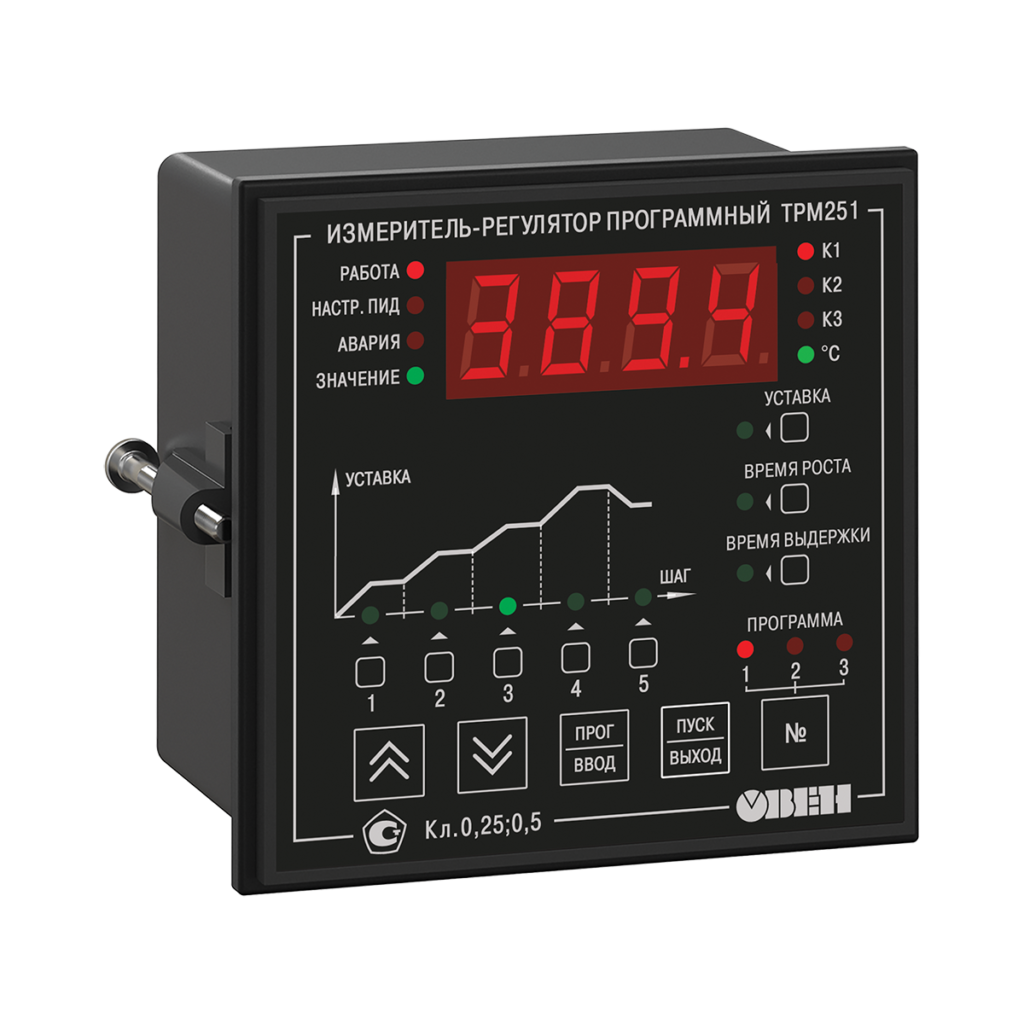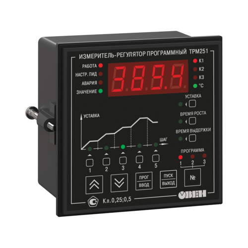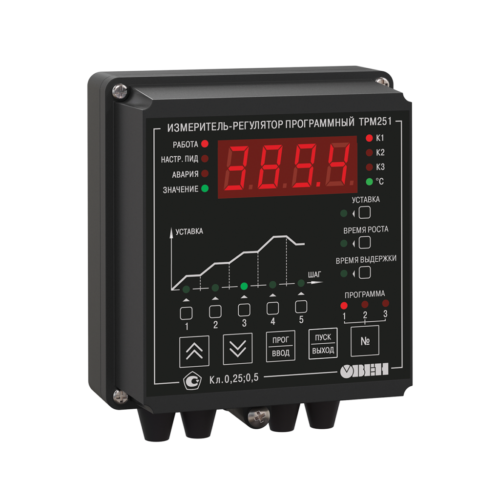 Проанализировав опыт эксплуатации промышленных регуляторов со встроенным таймером и поддержкой выполнения программ технолога (ТРМ501, ТРМ151, МПР51), компания ОВЕН выпустила на рынок ТРМ251 – программный ПИД регулятор. Этот прибор объединил в себе возможности современного, универсального средства управления технологическим процессом, простоту в эксплуатации, интуитивно понятный интерфейс оператора и надежность, обеспеченную применением современной элементной базы. ТРМ251 соответствует классу «А» по электромагнитной совместимости в промышленных условиях.