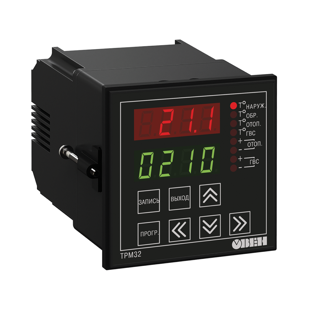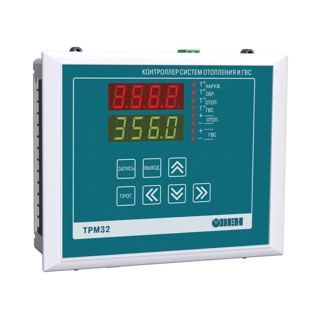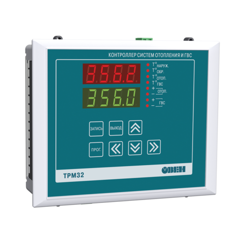 ОВЕН ТРМ32 – контроллер с готовым алгоритмом регулирования температуры в системах отопления и ГВС. Предназначен для применения в индивидуальных и центральных тепловых пунктах (ИТП и ЦТП) и котельных. Регулятор отопления и ГВС поддерживает температуру по заданной уставке или отопительному графику, управляя запорно-регулирующим клапаном (КЗР).