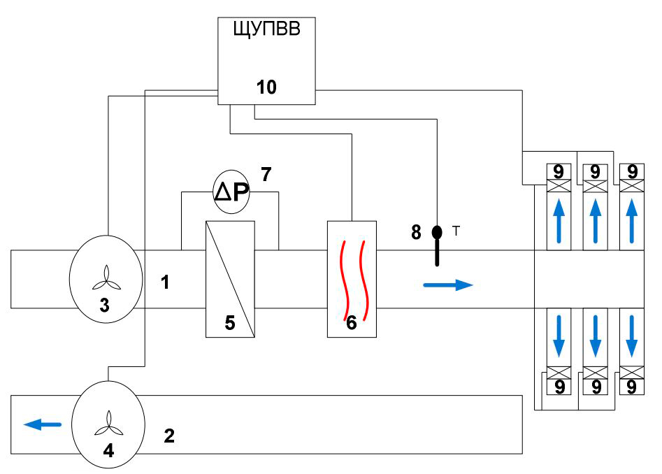 ЩУПВВ управляет работой элементов вентиляционной системы здания и контролирует работу системы вентиляции в различных режимах.