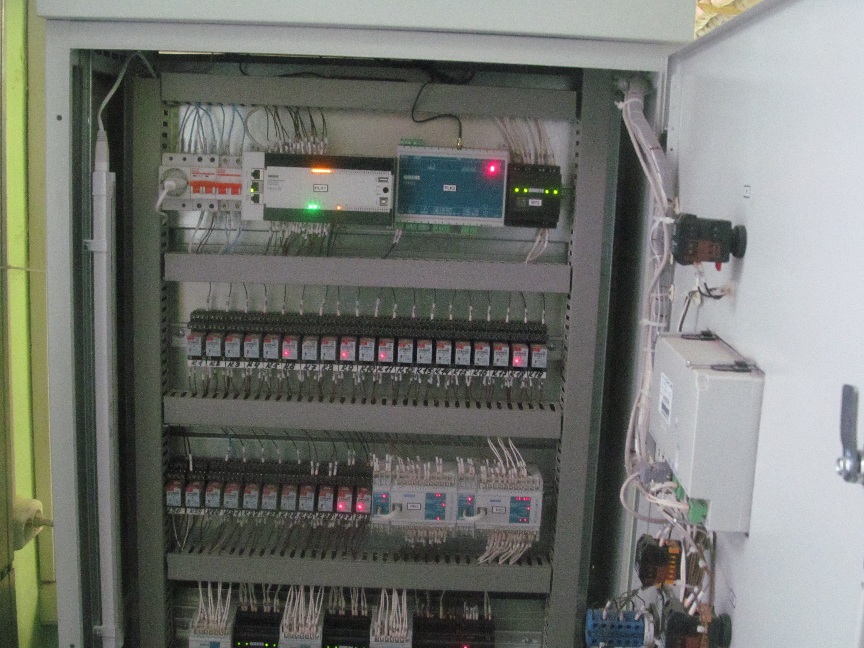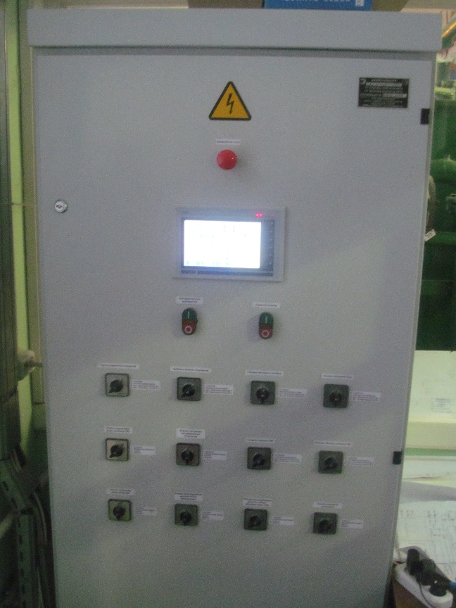 В основе системы управления и диспетчеризации – программируемый контроллер ОВЕН ПЛК110-60, программируемый контроллер ОВЕН ПЛК323, два программируемых реле ОВЕН ПР110, три модуля аналогового ввода ОВЕН МВ110-8АС. Используются 4 преобразователя частоты ОВЕН ПЧВ2, сигнализатор уровня жидкости 4-канальный ОВЕН БКК1 и 4 блока питания ОВЕН БП14.