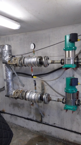 для поддержания давления в сети водоснабжения многоквартирного дома. Управление насосами осуществляется с помощью преобразователей частоты, которые меняют обороты насосов пропорционально давлению в сети, создавая круглосуточный комфортный напор для каждого потребителя.