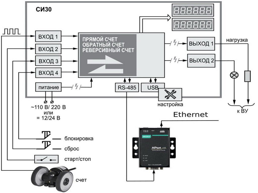 Устройство для измерения длины материала используется для подсчета количества продукции на транспортере или жидкости, длины наматываемого кабеля или экструзионной пленки, сортировки продукции, суммарного количества изделий и т.п. Рекомендуется использовать его совместно с энкодерами.